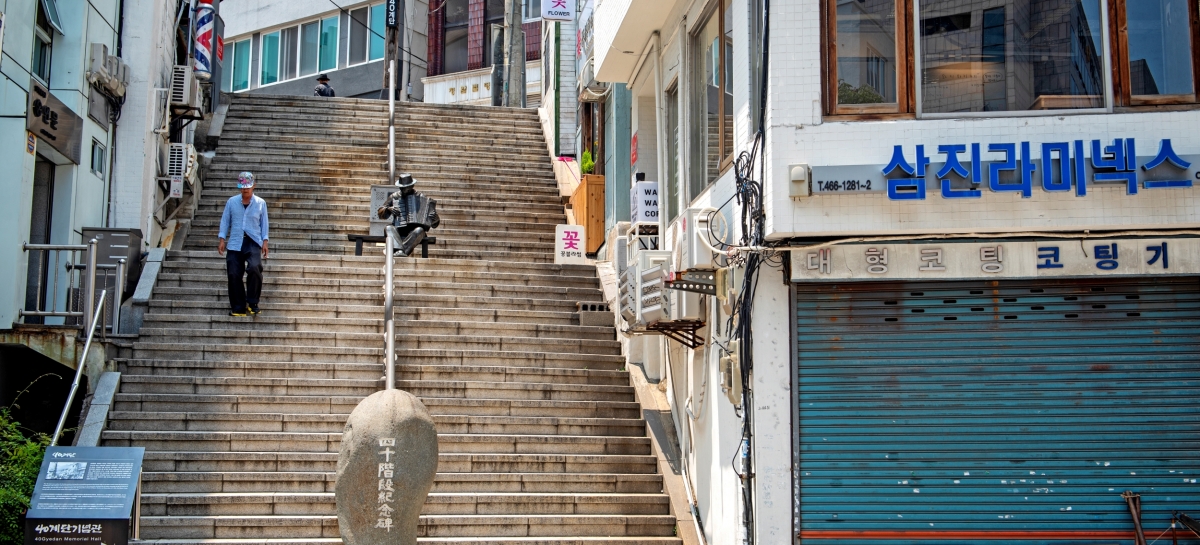 계단의 이름은 실제 40개의 계단에서 유래했으며, 1950년대에는 판자촌과 구호물자 장터가 주변에 형성되어 부산의 서민적삶이 고스란히 녹아 있었습니다. 이후 시대의 변화와 함께 계단 주변은 점차 상업지구로 변모했지만, 40계단이 가진 역사적 의미는 여전히 부산 시민들의 기억 속에 남아 있었습니다.