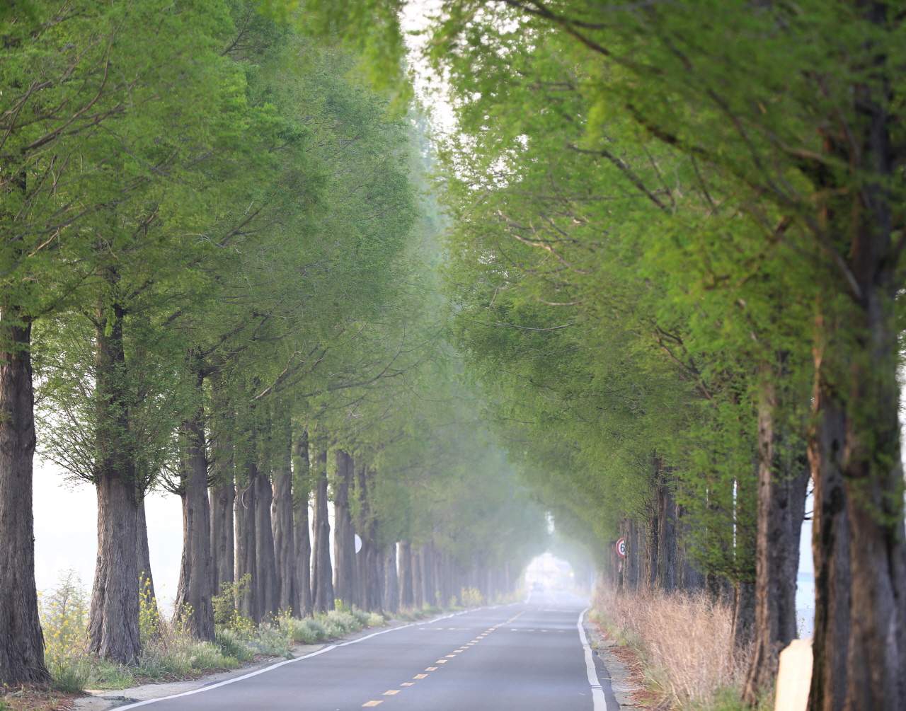 창원 가로수길은 약 3.3km에 달하는 긴 산책로로, 길 양옆에는 수백 그루의 메타세쿼이아 나무가 일렬로 뻗어 있습니다. 이 나무들은 마치 초록빛 터널을 이루듯 하늘 높이 솟아 있어, 걷는 이들에게 시원한 그늘과 아름다운 풍경을 선사합니다. 봄이 오면 연둣빛 새잎이 나무를 감싸고, 길가에는 이름 모를 들꽃들이 피어납니다. 여름에는 짙은 녹음이 우거져 한낮의 더위도 잠시 잊게 해 주며, 자연이 만들어내는 그늘 아래에서 시원한 바람을 맞으며 산책할 수 있습니다.